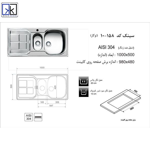 | ابعاد سینک | 100*50 |