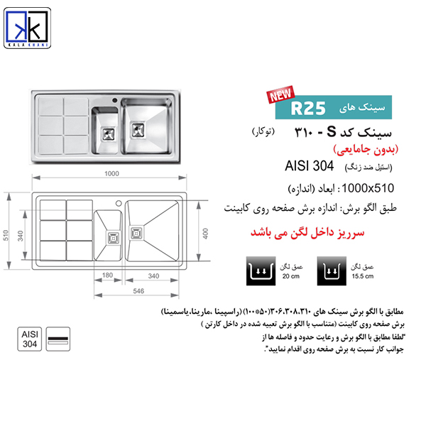 | نوع سینک | توکار |