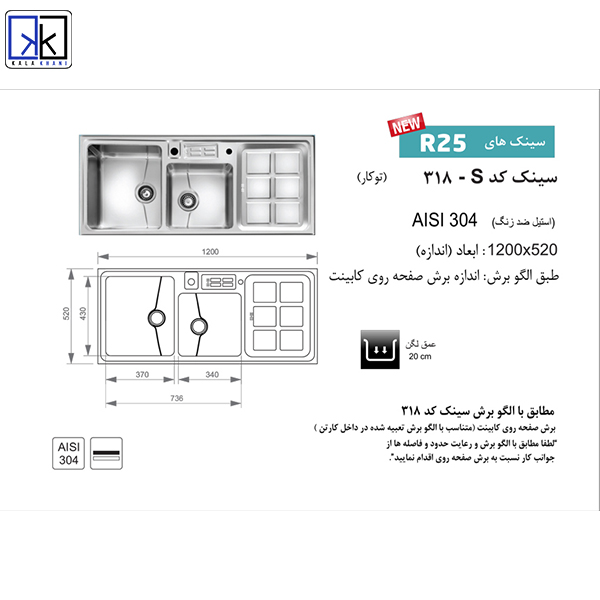 سینک توکار اخوان کد 318s