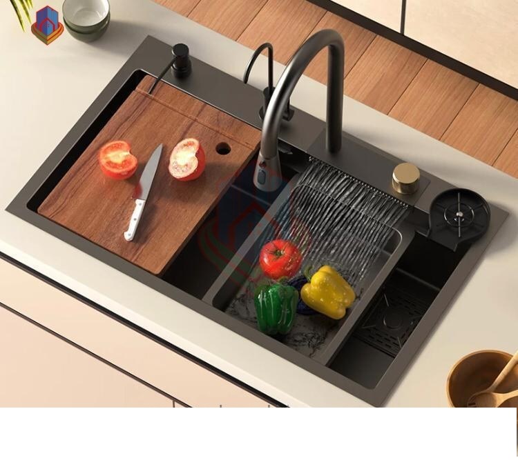 امکان باز و بسته کردن آب با اشاره دست بدون لمس پنل، تنظیم دمای آب با پنل لمسی،شیر آبشاری لمسی،شیر شاوری لمسی، نمایشگر دمای آب،قفل کودک،استیل آجدار 304 لانه زنبوری،سیفون اتوماتیک ولومی،آبچکان کارد و چنگال،تخته کار چوبی ضد آب،سبد میوه شور استیل،سبد آبچکان استیل،جامایع تمام استیل،لیوان شور